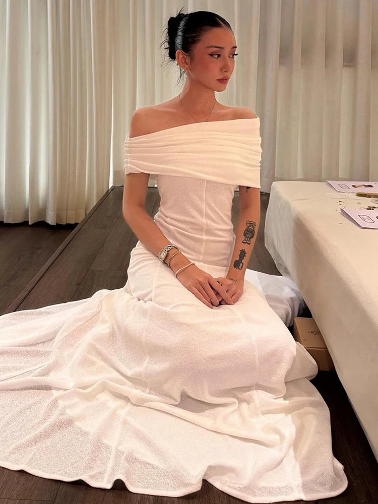Weird Puss Slanted Collar Dress Women Classic Patchwork Elegant Ruched Skinny Chic Summer Birthday Party Banquet Simple Vestidos