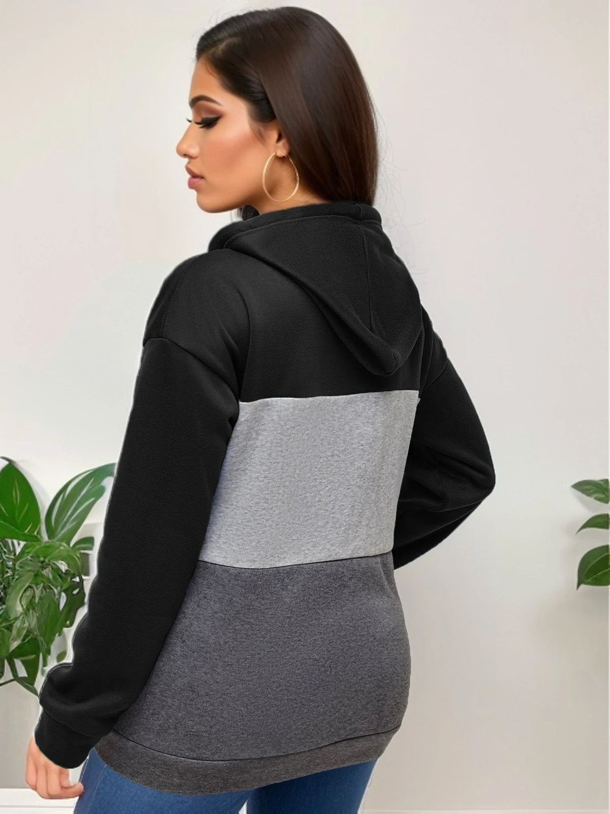 New autumn and winter thickened contrast color stitching hooded single-breasted drawstring pullover sweatshirt
