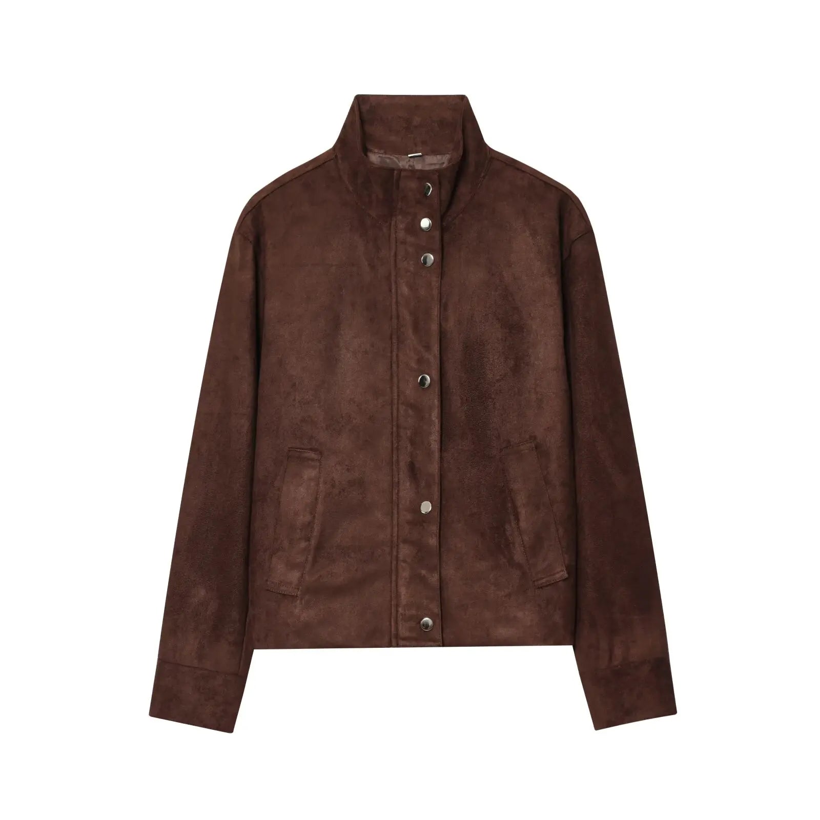 European and American style 2025 autumn new suede leather stand collar high-end fashion versatile jacket