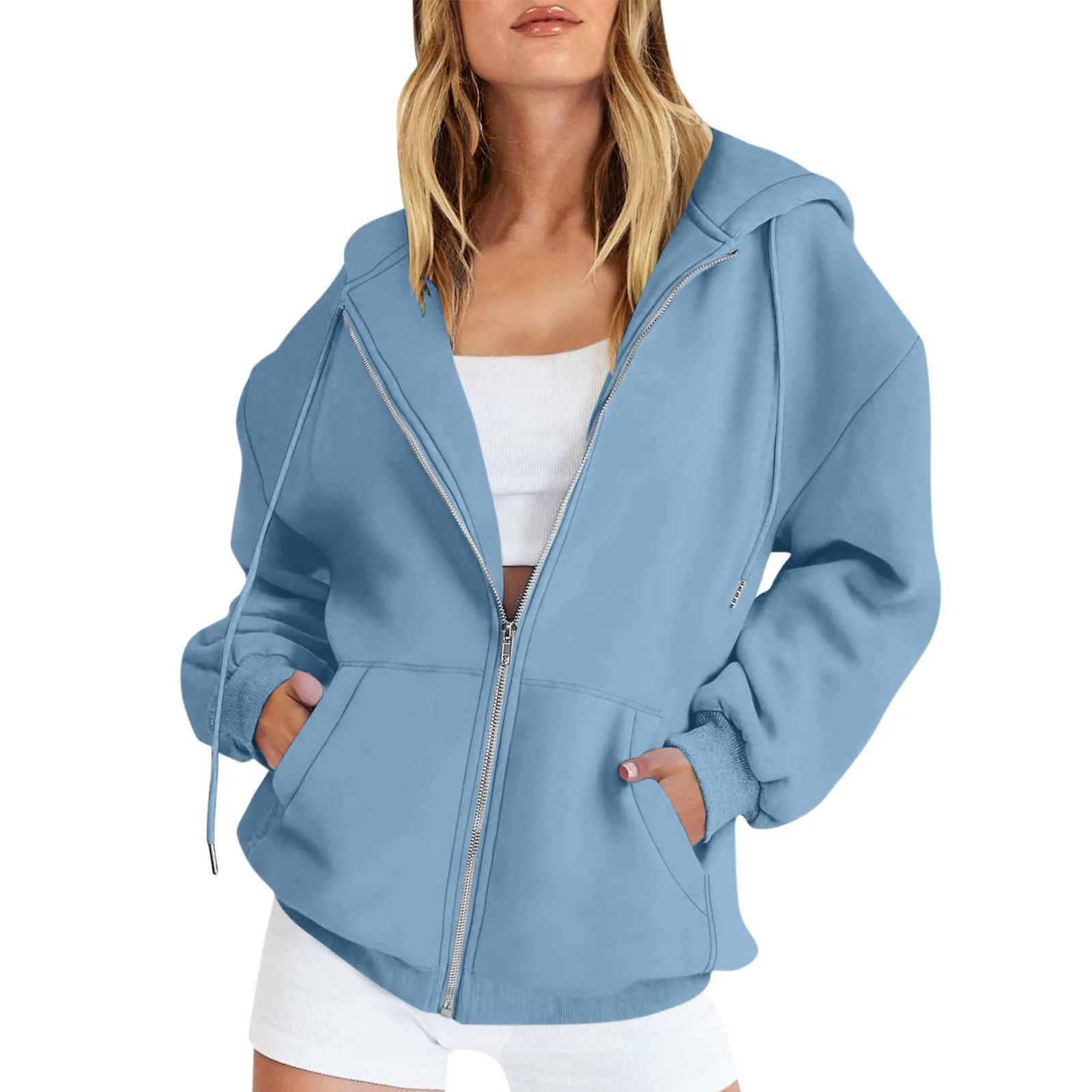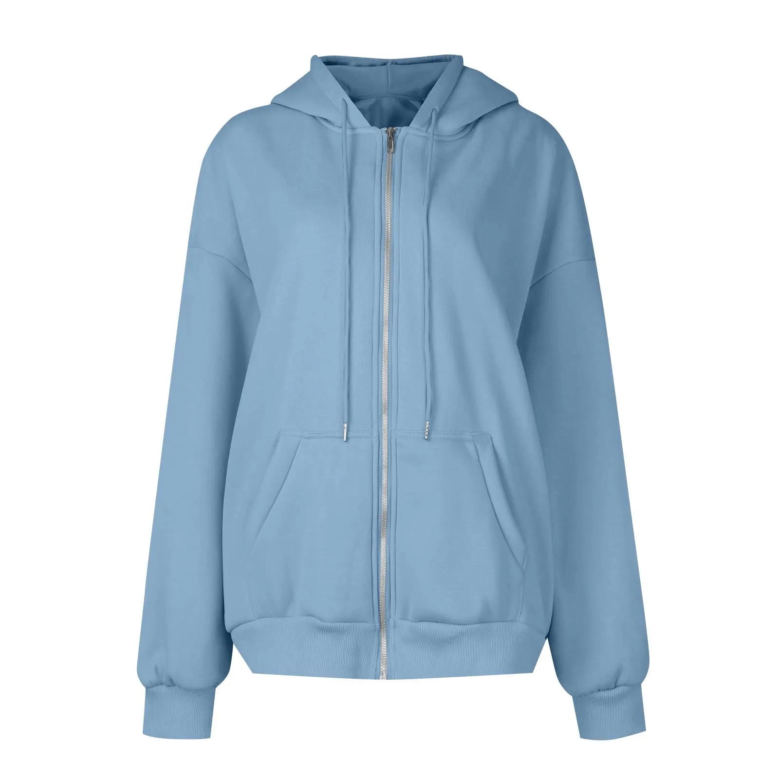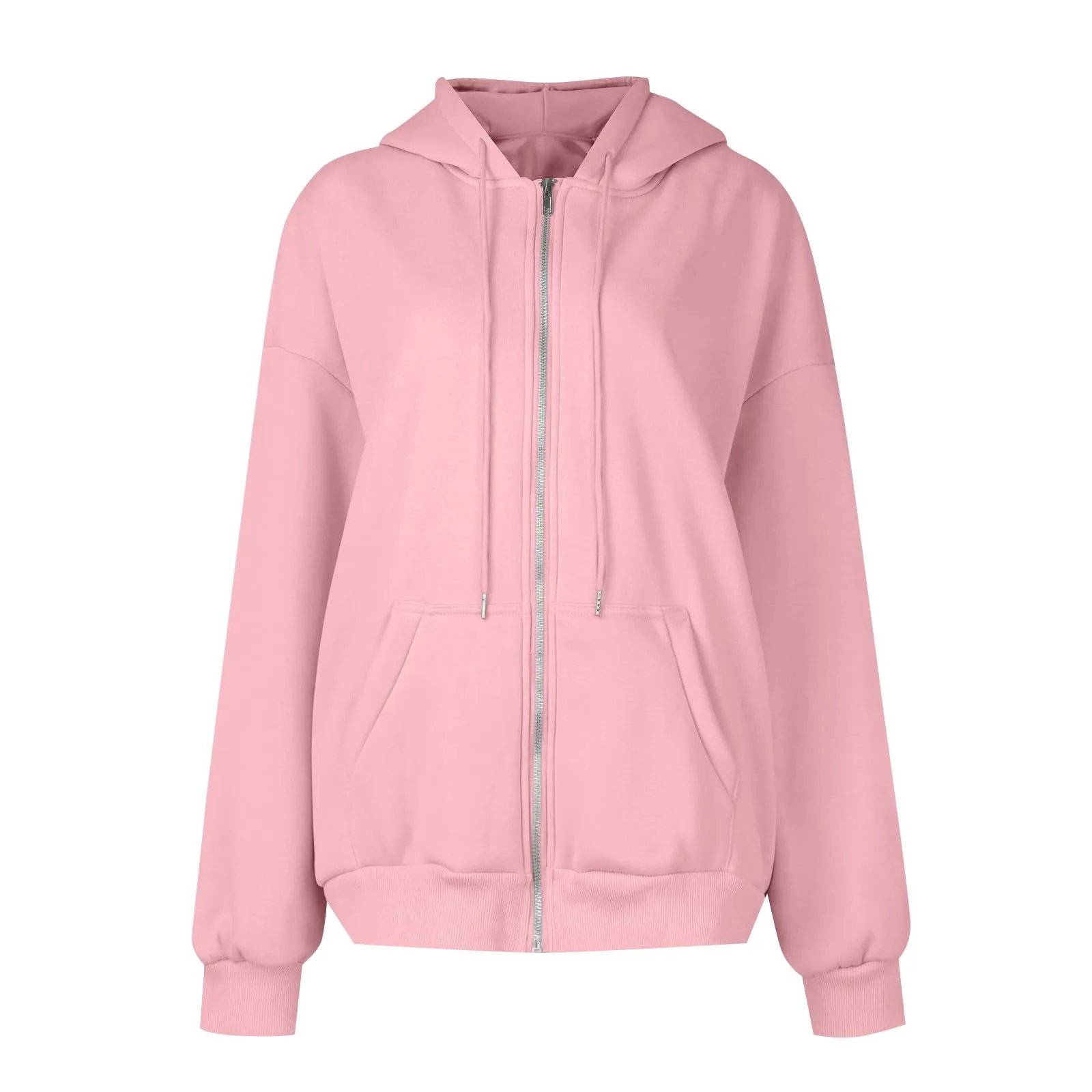 Women's Casual Fashion Solid Color Long Sleeved Zippered Hooded Sweatshirt